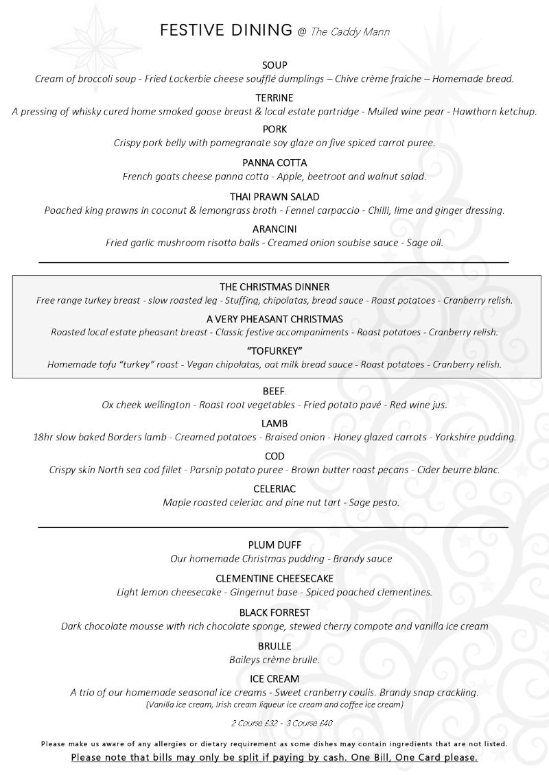 Our ever popular festive menu will run from Friday 28th November until Christmas Eve.